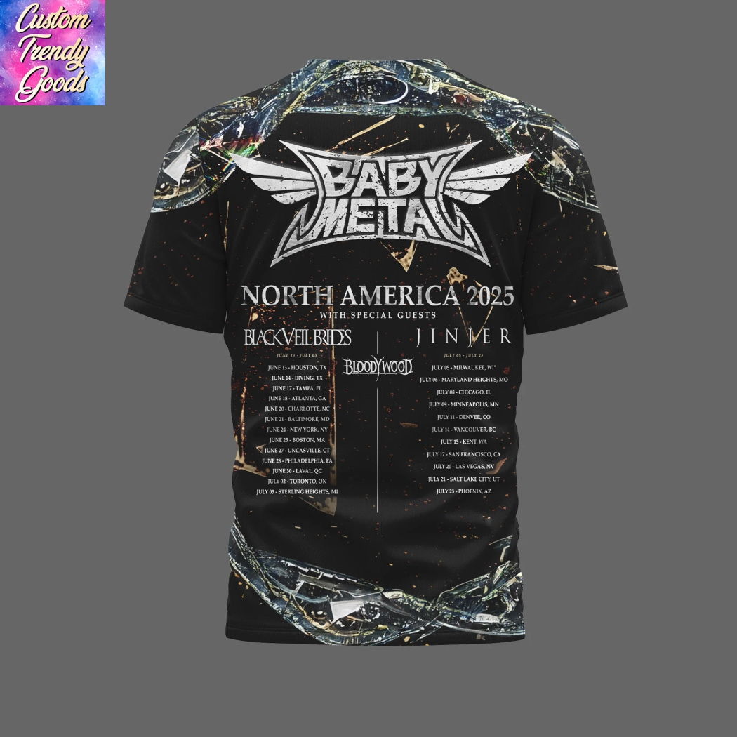 Immerse yourself in the electrifying energy of Babymetal’s anticipated North American 2025 tour with this exquisitely crafted 3D T-shirt. A collector’s item for the discerning metalhead, this garment transcends mere apparel; it’s a wearable testament to the band’s unique fusion of kawaii and heavy metal. The meticulously rendered 3D design explodes with vibrant hues and unparalleled detail, capturing the essence of Babymetal’s iconic stage presence. This isn’t just a shirt; it’s a statement piece, a bold declaration of your allegiance to a musical phenomenon that defies categorization. Feel the exhilarating rush of the concert’s atmosphere with every wear, a palpable connection to the unforgettable spectacle that awaits. Prepare to command attention with this audacious garment, a conversation starter guaranteed to ignite intrigue among fellow aficionados. Owning this 3D masterpiece is an investment in a piece of musical history, a tangible embodiment of the band’s captivating artistry and the promise of an electrifying tour experience. This isn’t simply clothing; it’s an embodiment of the Babymetal aesthetic, meticulously designed for the true devotee. Secure your piece of this captivating legacy before it’s gone—a truly exceptional addition to any discerning metalhead’s wardrobe. Prepare to be enthralled by its striking visual impact and the indelible mark it will leave on your personal style. This shirt represents more than just merchandise; it’s a symbol of belonging to a vibrant and passionate community of music lovers.