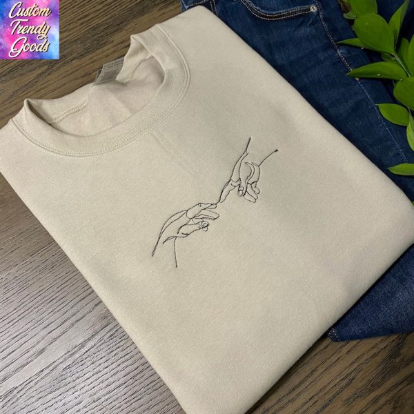 Creation Of Adam God Adam Hands Embroidered Sweatshirt Information: