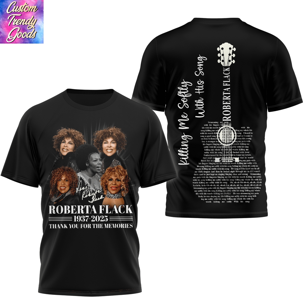 Roberta Flack 1937-2025 Thank You For The Memories 3D T-Shirt Information: