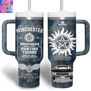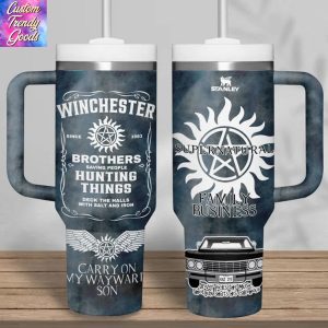 Indulge your fandom with this exquisite Supernatural Winchesters Brothers tumbler, a sophisticated vessel designed for the discerning aficionado of the iconic television series. This isn’t merely a container for your favorite beverage; it’s a testament to your appreciation for the intrepid Winchester brothers and their relentless pursuit of justice. The inclusion of a convenient handle and straw elevates the drinking experience, offering both ergonomic elegance and practical functionality. This meticulously crafted tumbler transcends the mundane; it’s a conversation starter, a collectible treasure, and a daily reminder of Sam and Dean’s epic battles against the supernatural. Its sleek design seamlessly blends form and function, making it suitable for both casual enjoyment at home and more formal settings. More than just a tumbler, it’s a stylish embodiment of your passion, a chic declaration of your allegiance to the Winchester legacy, and a superior alternative to commonplace drinking ware. Embrace the hunt, one sip at a time, with this unparalleled piece of fandom memorabilia, a true artifact for the dedicated collector and a delightful treat for the casual enthusiast alike. Its presence is an unequivocal statement: you are a connoisseur of the uncanny, a devotee of the divine, and a proud member of the Supernatural brotherhood.